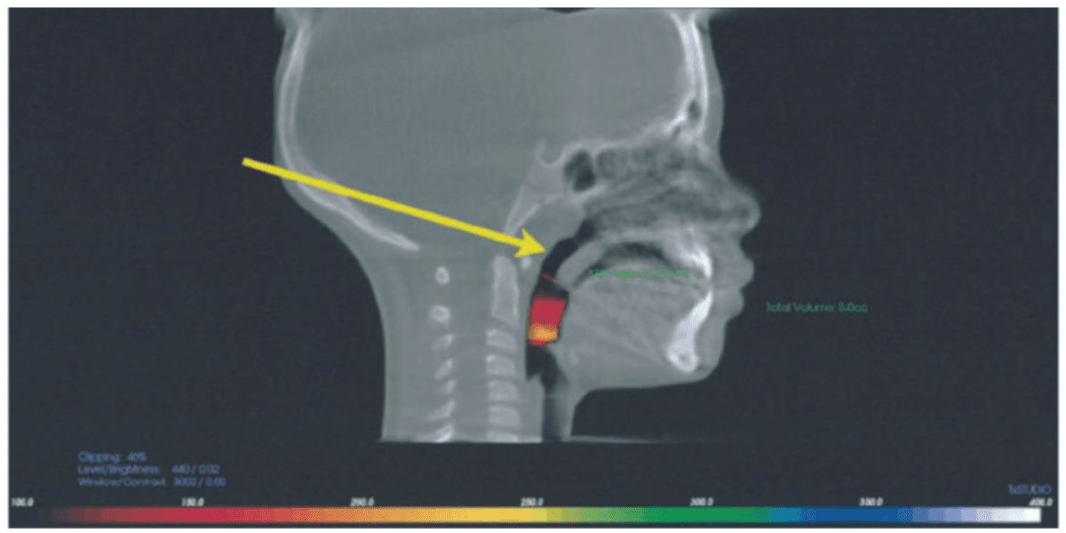 A second line treatment to treat POSA is positive airway pressure therapy (PAP), most often utilizing continuous positive airway pressure (CPAP). Midface deficiency and POSA are highly comorbid. This is demonstrated by the incidence of children with Down syndrome who have POSA after T&A surgery at 65%-73%.35-38 CPAP use on children with POSA has been shown to prevent normal maxillary development and increase midface deficiency, thus making the patient more dependent on PAP.39 Maxillary development has been demonstrated to improve POSA and nasal function by increasing volume.40,41 It has been shown that maxillary expansion can shrink T&A and increase the internal nasal valve (which is the first point of entry of air into the nose).42,43 Nasal valve compromise (narrowing of the internal nasal valve) has been found to result in a 7-times greater chance of TM joint capsulitis and facial and cervical myositis, via mouth breathing, when compared to other nasal obstructions (Figure 4).44