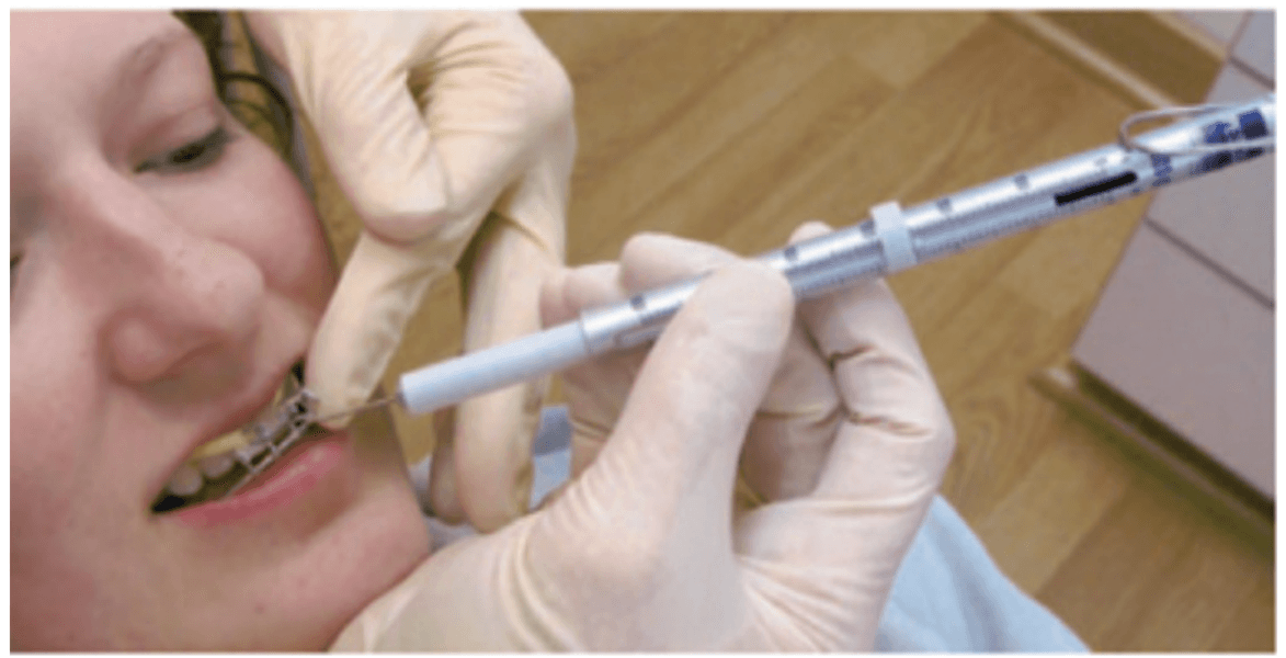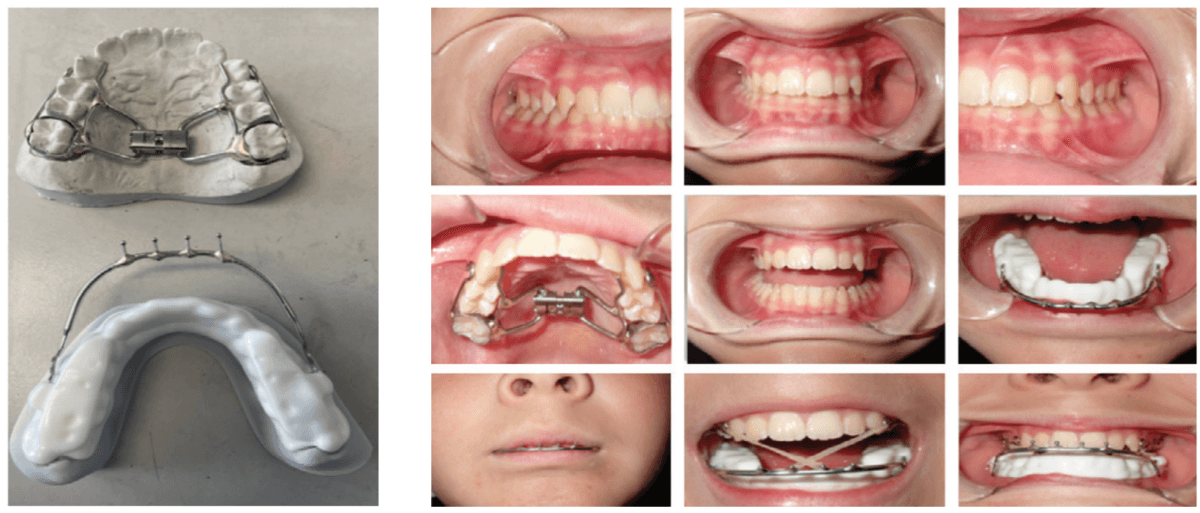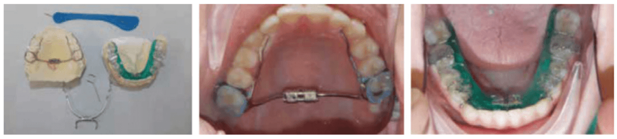 The lower appliance that receives the Tandem Bow is to be worn 12 hours per day and only removed to eat if necessary. Most children should sleep for 10 hours, so the device can be worn during sleep, an hour before bed and an hour after waking. The force of the elastics, worn for 12 hours per day (mostly while sleeping), should have approximately 200g per side in mixed dentition and 250-300g per side in permanent dentition (Figure 11).