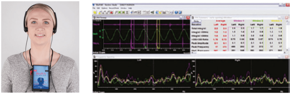 Protraction of the maxilla in combination with transverse development utilizing a Delaire’s mask for Class III patients with POSA has been shown to produce statistically significant increase in linear upper airway measurements and oropharyngeal and nasopharyngeal dimensions, improving airway patency and OSA (Figure 5).45 The problem with this technique is that it uses the frontal bone and the mandible as leverage, placing retractive forces on them. If the patient has articular disc displacement and or capsulitis (inflammation of the joint capsule), the retraction of the mandible can result in increased pathology. A proper screening of the TM joints via joint vibration analysis to measure soft and hard tissue vibrations during function (JVA BioResearch, Inc.), as well as a thorough clinical examination, will help to identify these patients (Figures 6 and 7).