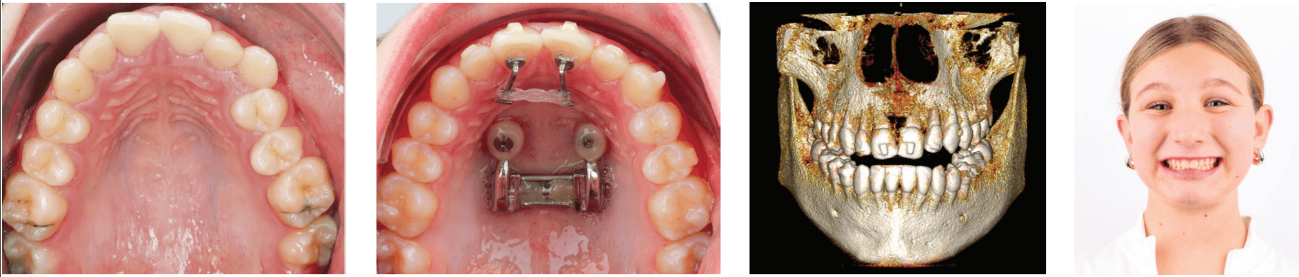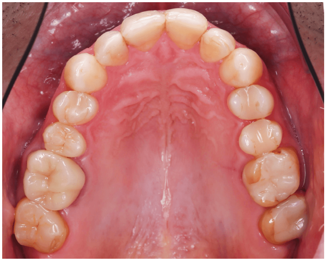 A bone-borne expander was selected to maximize skeletal expansion while minimizing dentoalveolar bending. Aligners were then used to restore the occlusion while the expander remained on the palate as a skeletal retainer for another 6 months.