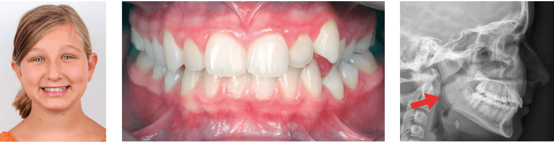 Clinical examination revealed maxillary transverse deficiency, high-arched palate, mild crowding, and enlarged tonsils. The mother reported that the patient exhibited mouth breathing and “loud breathing” sounds during sleep. To further assess nasal breathing, the patient completed the Nasal Obstruction Symptom Evaluation (NOSE) questionnaire, which indicated nasal obstruction. A home sleep study showed an apnea-hypopnea index (AHI) of 6.4, confirming the presence of moderate obstructive sleep apnea. Patient also was referred to an ENT specialist.
